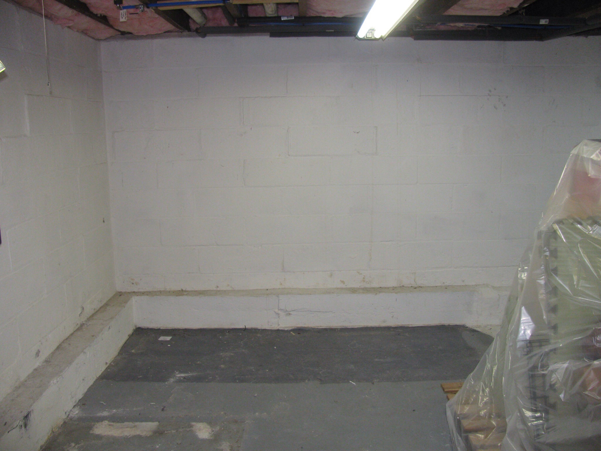 We installed 118 feet of Grate Drain, (1) Sump Pit, (1) Pro Series 3033 Pump, (1) Dedicated Outlet, 90 feet of Finish Shield Vapor Barrier, and 28 feet of Thermal Shield Vapor Barrier.